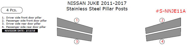 Nissan Juke 2011, 2012, 2013, 2014, 2015, 2016, 2017, Stainless Steel Pillar Posts, 4 Pcs.