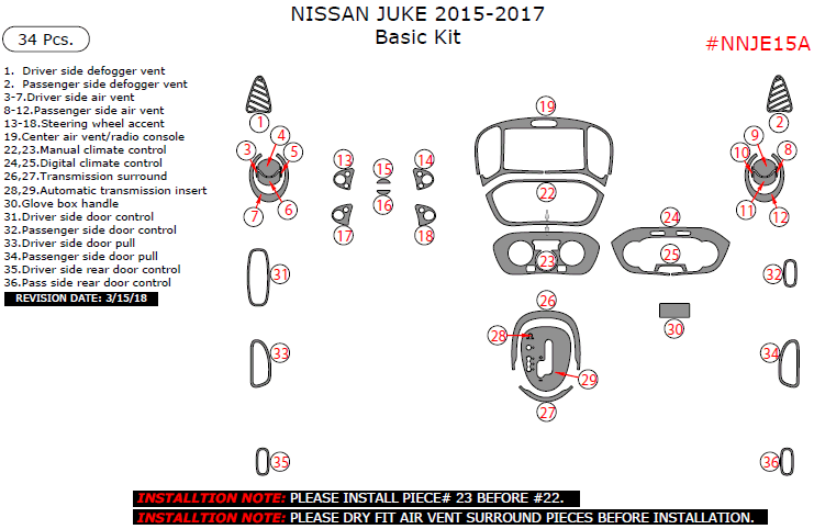 Nissan Juke 2015, 2016, 2017, Basic Interior Kit, 34 Pcs.