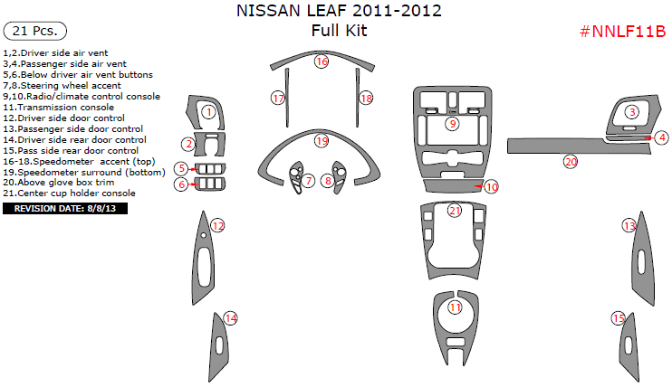 Nissan Leaf 2011-2012, Full Interior Kit, 21 Pcs.