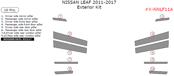 Nissan Leaf 2011, 2012, 2013, 2014, 2015, 2016, 2017, Exterior Kit, 10 Pcs.