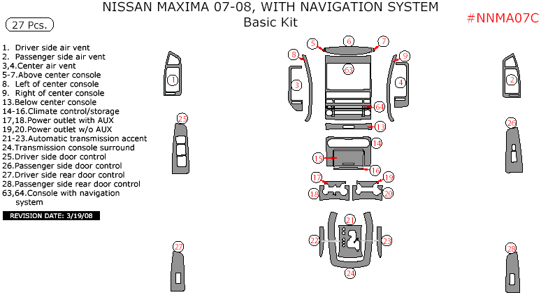 Nissan Maxima 2007-2008, With Navigation System, Basic Interior Kit, 27 Pcs.