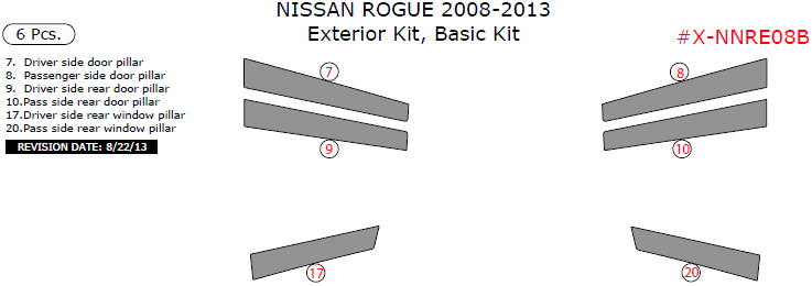 Nissan Rogue 2008, 2009, 2010, 2011, 2012, 2013, Basic Exterior Kit, 6 Pcs.