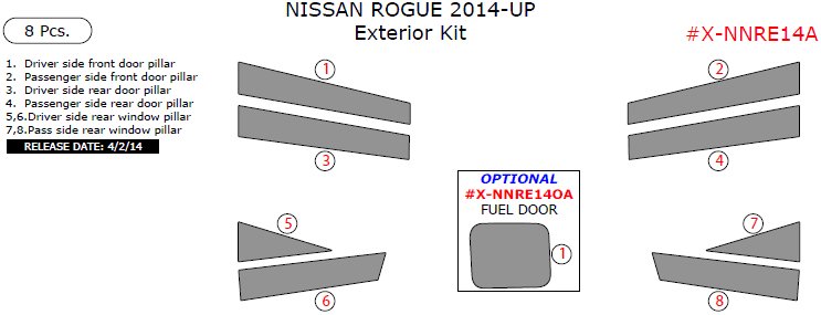 Nissan Rogue 2014, 2015, 2016, Exterior Kit, 8 Pcs.
