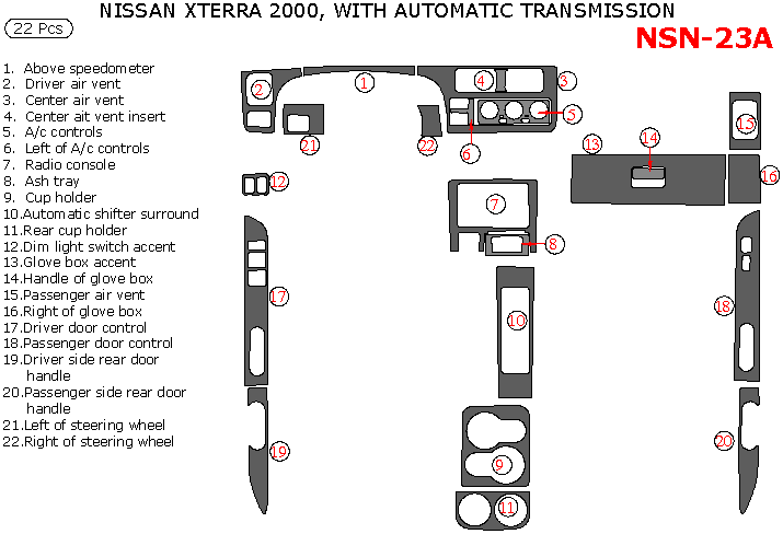 Nissan Xterra 2000, Interior Dash Kit, Automatic 22 Pcs.