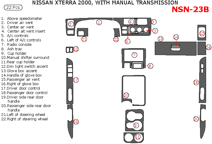 Nissan Xterra 2000, Interior Dash Kit, Manual, 22 Pcs.