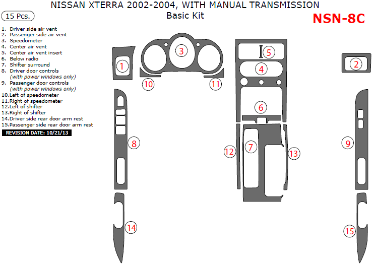 Nissan Xterra 2002, 2003, 2004, With Manual Transmission, Basic Interior Kit, 15 Pcs.