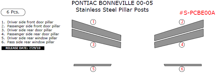 We offer a wide variety of colors and materials of Pontiac Bonneville 2000, 2001, 2002, 2003, 2004, 2005, Stainless Steel Pillar Posts, 6 Pcs. Choose your favourite option and place an order.
