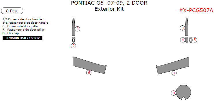 Pontiac G5 2007, 2008, 2009, 2 Door, Exterior Kit, 8 Pcs.