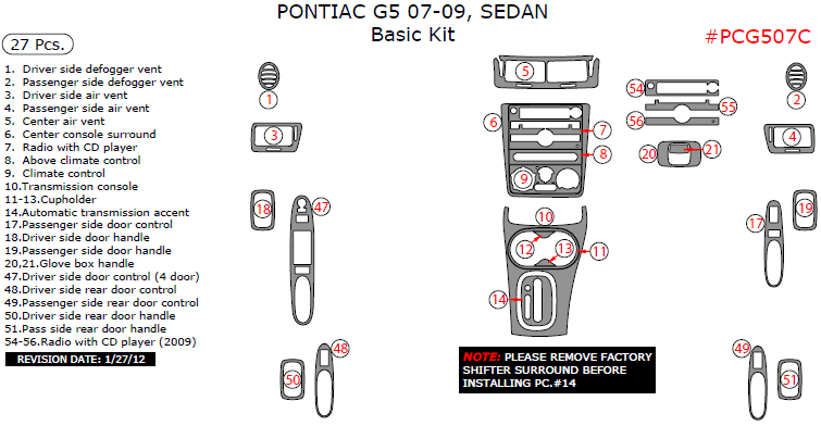 Pontiac G5 2007, 2008, 2009, Sedan, Basic Interior Kit, 27 Pcs.