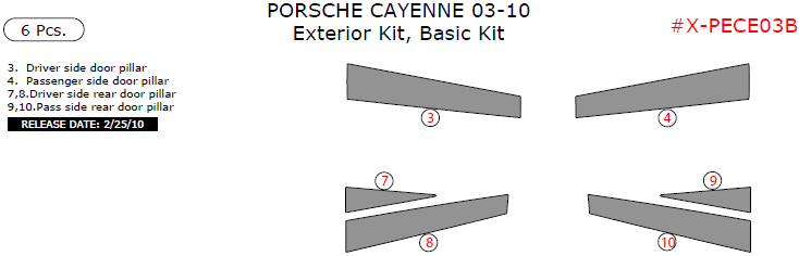 Porsche Cayenne 2003, 2004, 2005, 2006, 2007, 2008, 2009, 2010, Basic Exterior Kit, 6 Pcs.