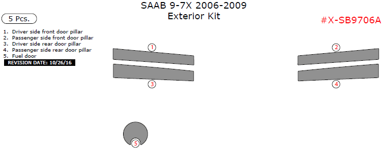 Saab 9-7X 2006, 2007, 2008, 2009, Exterior Kit, 5 Pcs.