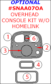 Saturn Aura 2007, 2008, 2009, Interior Dash Kit, Optional Overhead Kit, W/o Homelink, 6 Pcs.