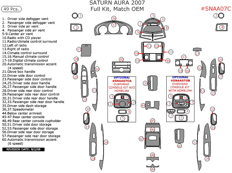 Saturn Aura 2007, Full Interior Kit, 49 Pcs., Match OEM