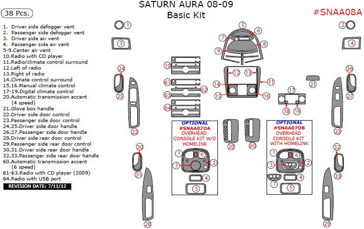 Saturn Aura 2008-2009, Basic Interior Kit, 38 Pcs.