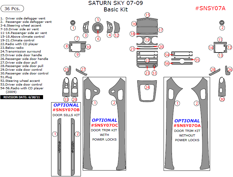 Saturn Sky 2007, 2008, 2009, Basic Interior Kit, 36 Pcs.
