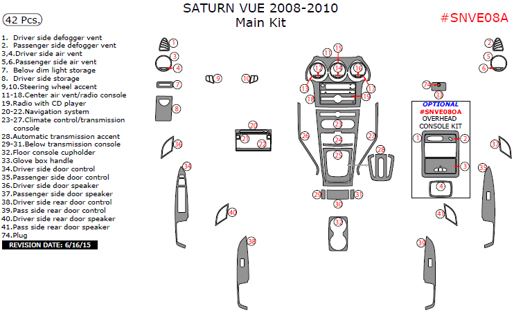 Saturn Vue 2008, 2009, 2010, Main Interior Kit, 42 Pcs.