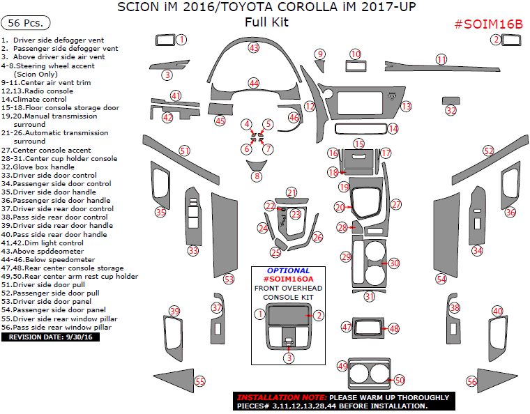 Scion iM 2016/Toyota Corolla iM 2017-2018, Full Interior Kit, 56 Pcs.