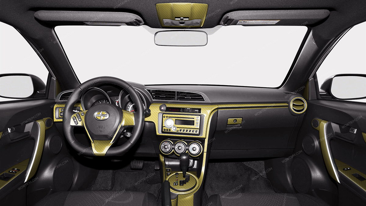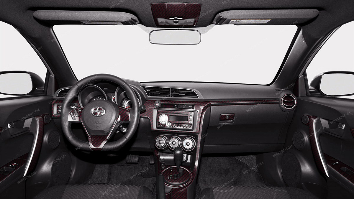 Full interior dash kit of 59 pieces for Scion tC 2011, 2012, 2013, 2014, 2015, 2016 is available in a variety of colors (black, red, yellow, blue, etc.) and materials (carbon fiber, wood, aluminum, etc.). Select your preferred option of the 2011-2016 Scion tC interior accessory and buy the high-quality custom dash trim kit.