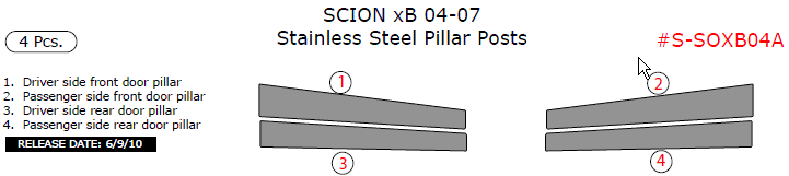 Scion XB 2004, 2005, 2006, 2007, Stainless Steel Pillar Posts, 4 Pcs.