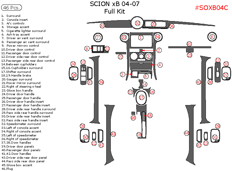 Scion xB 2004, 2005, 2006, 2007, Full Interior Kit, 45 Pcs.