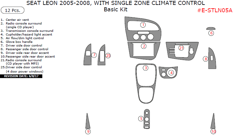 Seat Leon 2005, 2006, 2007, 2008, With Single Zone Climate Control, Basic Interior Kit, 12 Pcs.