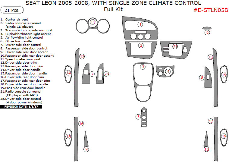 Seat Leon 2005, 2006, 2007, 2008, With Single Zone Climate Control, Full Interior Kit, 21 Pcs.