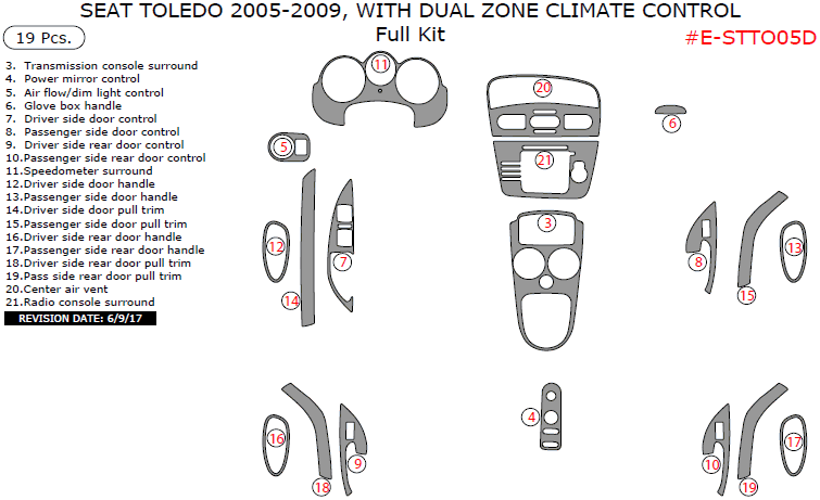 Seat Toledo 2005, 2006, 2007, 2008, 2009, With Dual Zone Climate Control, Full Interior Kit, 19 Pcs.