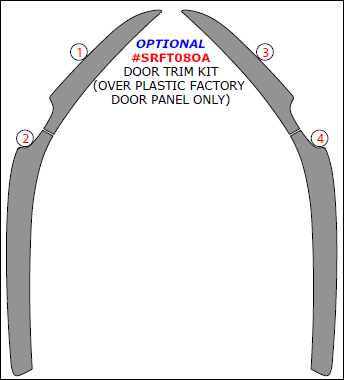 Smart ForTwo 2008, 2009, 2010, 2011, 2012, 2013, 2014, 2015, Optional Door Interior Trim Kit (Over Plastic Factory Door Trim Only), 4 Pcs.