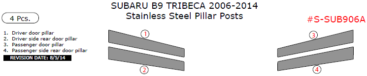 Subaru B9 Tribeca 2006, 2007, 2008, 2009, 2010, 2011, 2012, 2013, 2014, Stainless Steel Pillar Posts, 4 Pcs.