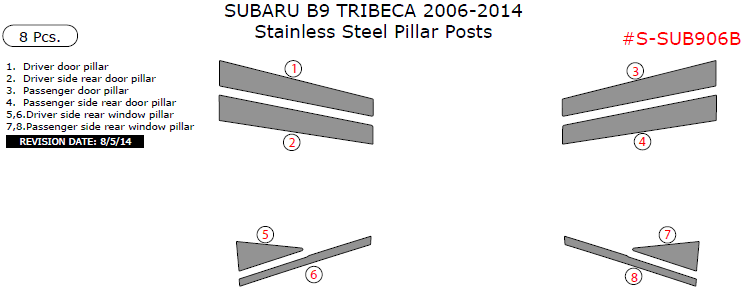 Subaru B9 Tribeca 2006, 2007, 2008, 2009, 2010, 2011, 2012, 2013, 2014, Stainless Steel Pillar Posts, 8 Pcs.