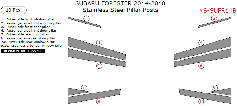 Subaru Forester 2014, 2015, 2016, 2017, 2018, Stainless Steel Pillar Posts, 10 Pcs.