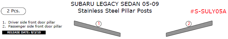 Subaru Legacy Sedan 2005, 2006, 2007, 2008, 2009, Stainless Steel Pillar Posts, 2 Pcs.