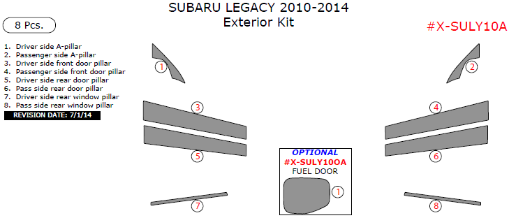 Subaru Legacy 2010, 2011, 2012, 2013, 2014, Exterior Kit, 8 Pcs.