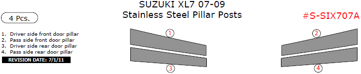 Suzuki XL-7 2007, 2008, 2009, Stainless Steel Pillar Posts, 4 Pcs.