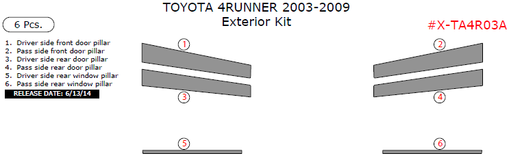 Toyota 4Runner 2003, 2004, 2005, 2006, 2007, 2008, 2009, Exterior Kit, 6 Pcs.