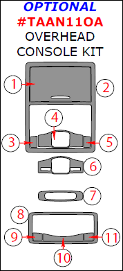 Toyota Avalon 2011-2012, Optional Overhead Console Interior Kit, 11 Pcs., Match OEM