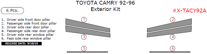 Toyota Camry 1992, 1993, 1994, 1995, 1996, Exterior Kit, 6 Pcs.