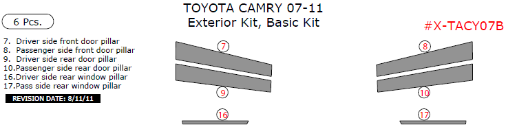 Toyota Camry 2007, 2008, 2009, 2010, 2011, Basic Exterior Kit, 6 Pcs.