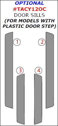 Toyota Camry 2012, 2013, 2014, 2015, 2016, 2017, Interior Dash Kit, Optional Door Sills (For Models With Plastic Door Step), 4 Pcs.