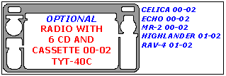 Toyota Celica/Echo/MR-2 2000, 2001, 2002, 2003, 2004, 2005, Toyota Highlander 2001-2007, Interior Dash Kit, Optional Radio With 6 CD and Cassette (See Diagram For Correct Year), 1 Pcs.