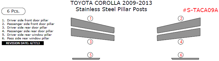 Toyota Corolla 2009, 2010, 2011, 2012, 2013, Stainless Steel Pillar Posts, 6 Pcs.