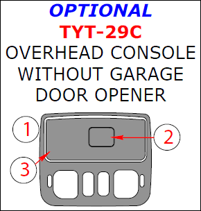 We offer a wide variety of colors and materials of Toyota Land Cruiser 1998, 1999, 2000, 2001, 2002, Interior Dash Kit, Optional Overhead Console Without Garage Door Opener, 3 Pcs. Choose your favourite option and place an order.