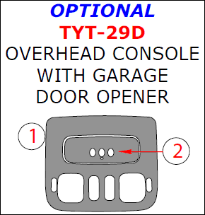 Toyota Land Cruiser 1998, 1999, 2000, 2001, 2002, Interior Dash Kit, Optional Overhead Console With Garage Door Opener, 2 Pcs.
