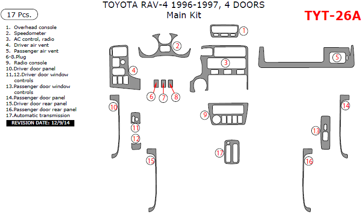 Toyota Rav4 1996-1997, 4 Door, Main Interior Kit, 17 Pcs.