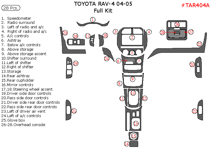 Toyota Rav4 2004-2005, Full Interior Kit, 28 Pcs.