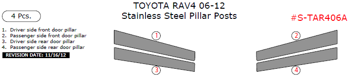 Toyota Rav4 2006, 2007, 2008, 2009, 2010, 2011, 2012, Stainless Steel Pillar Posts, 4 Pcs.