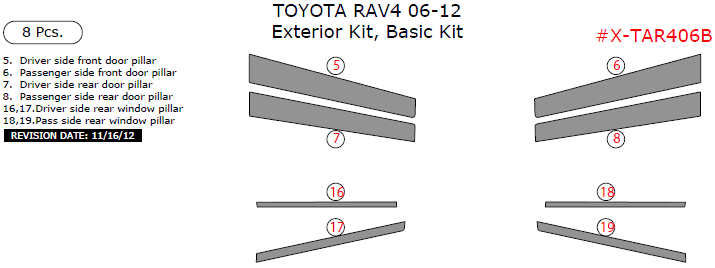 Toyota Rav4 2006, 2007, 2008, 2009, 2010, 2011, 2012, Basic Exterior Kit, 8 Pcs.