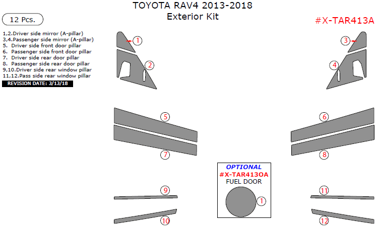 Toyota Rav4 2013, 2014, 2015, 2016, 2017, 2018, Exterior Kit, 12 Pcs.