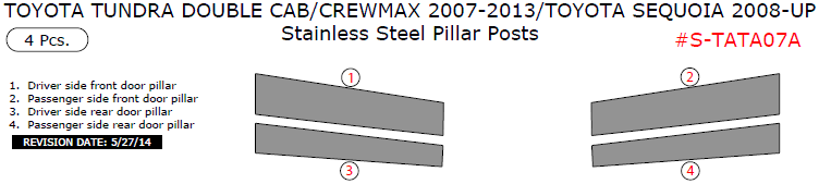 Toyota Tundra Double Cab/CrewMax 2007, 2008, 2009, 2010, 2011, 2012, 2013/Toyota Sequoia 2008-2015, Stainless Steel Pillar Posts, 4 Pcs.