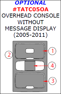 Toyota Tacoma 2005, 2006, 2007, 2008, 2009, 2010, 2011, Interior Dash Kit, Optional Overhead Console W/o Message Display, 4 Pcs.